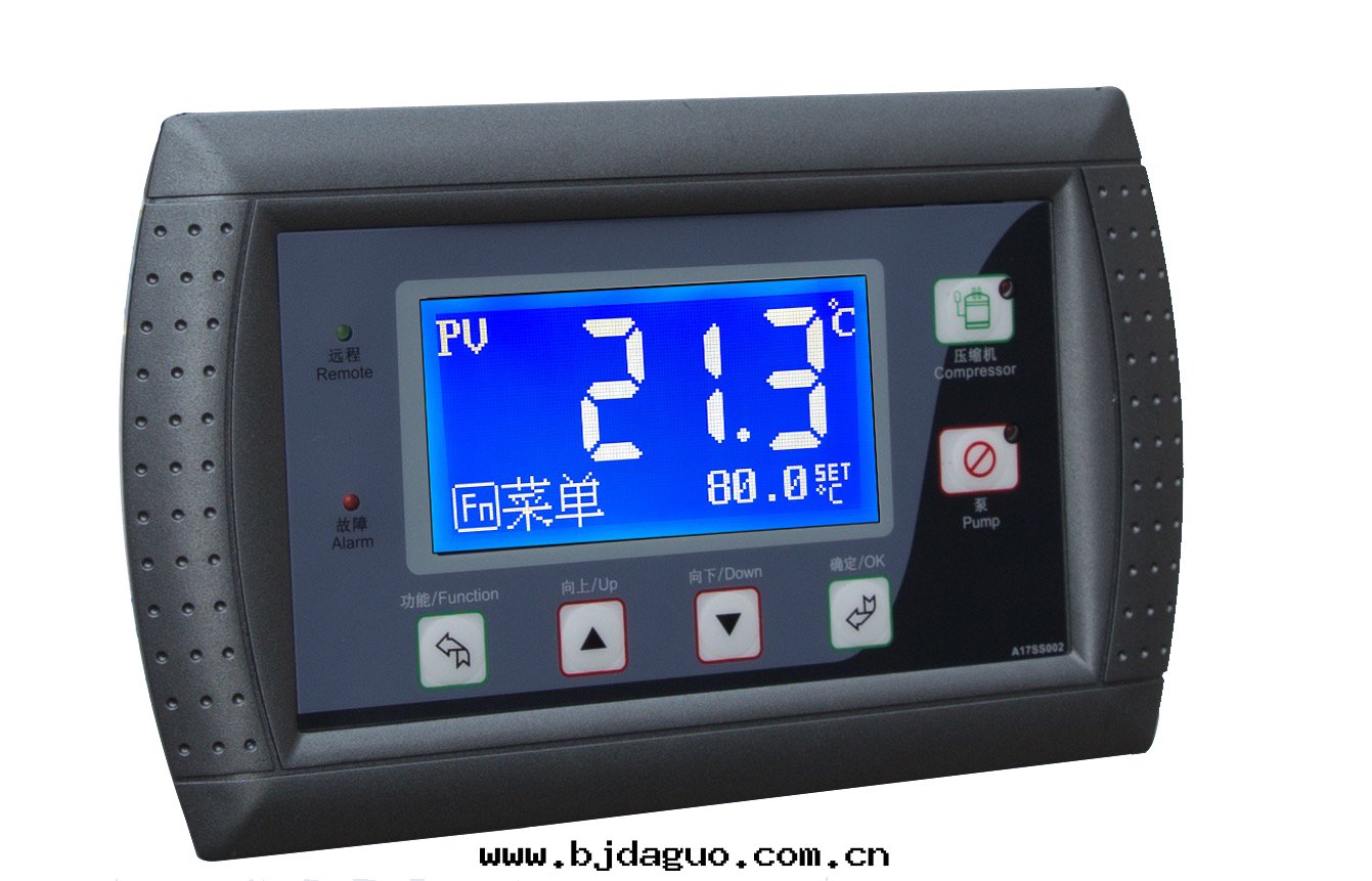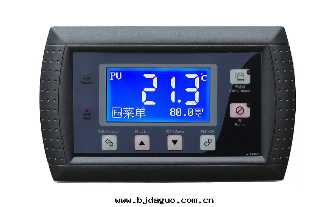 按鍵功能(néng):菜單按鍵,增加或(huò)翻页按鍵,減少(shǎo)或(huò)翻页按鍵鍵,确認按鍵,開(kāi)機(jī)/水(shuǐ)泵按鍵,壓缩機(jī)按鍵